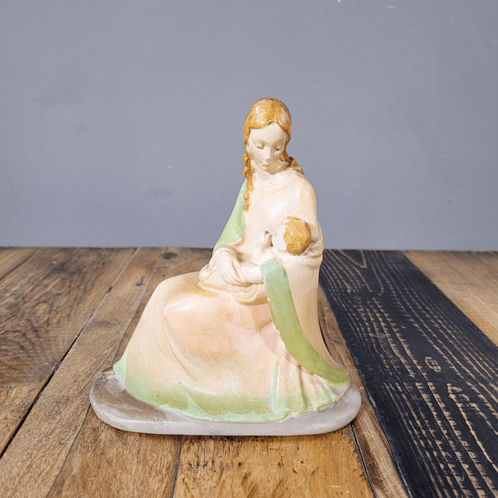 Schöne, schlichte Maria mit Kind Figur. Die hübsche Krippenfigur ist sehr alt und ein schöne Deko zur Weihnachtszeit. Die Madonna oder Madonnenfigur bringt schönen Vintage Charme mit sich