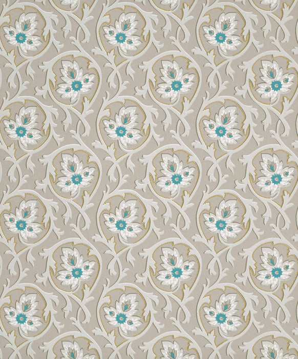 Das klassische Muster  Hoja - Cool Arbour mit Blätterranken wurde für ein traditionelles wie handgemaltes Finish auf die Oberfläche gedruckt und zur Dekoration eines Dachbodens der Oxburgh Hall verwendet. Obwohl das Designelement von spanisch geprägtem und vergoldetem Leder aus dem 17. Jahrhundert zeugt, stammt es aufgrund des Drucksubstrats, das aus maschinengedrucktem Papier besteht, wahrscheinlich aus dem späten 19. Jahrhundert. Er ist in sechs interessanten Farbstellungen erhältlich, von denen vier verschiedene Nuancen einer einzigen Farbe aufweisen.