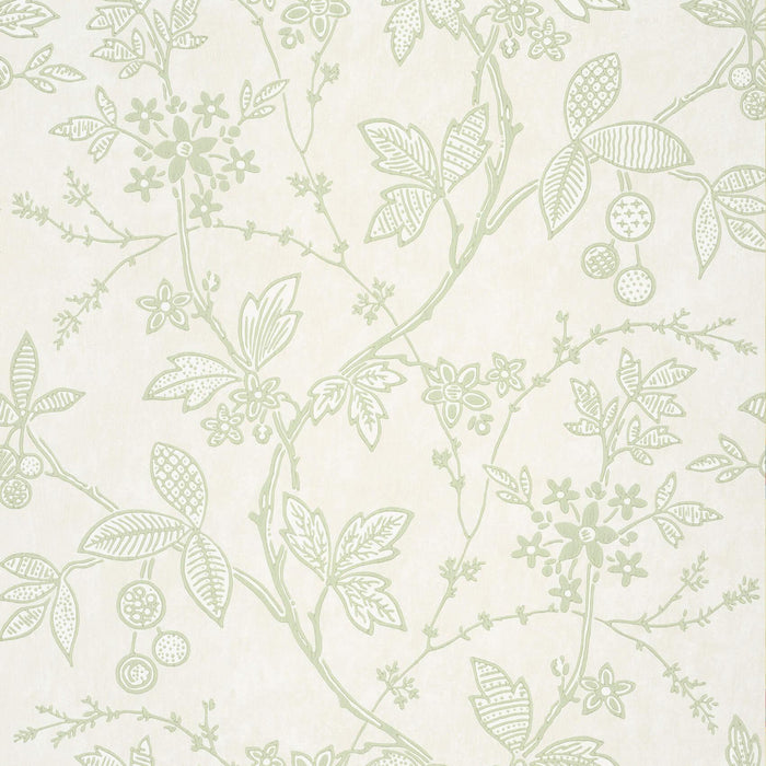 Wrest Trail is based on an interesting original from the English Heritage Archives and is particularly notable for the drawing style used to create the consistent tendril pattern. A structured, meandering branch decorated with informal, almost sketchy interpretations of leaves and fruit. At first glance, the style of the design is more reminiscent of the mid-20th century than of its actual origins around a hundred years earlier. It is available in five color combinations.