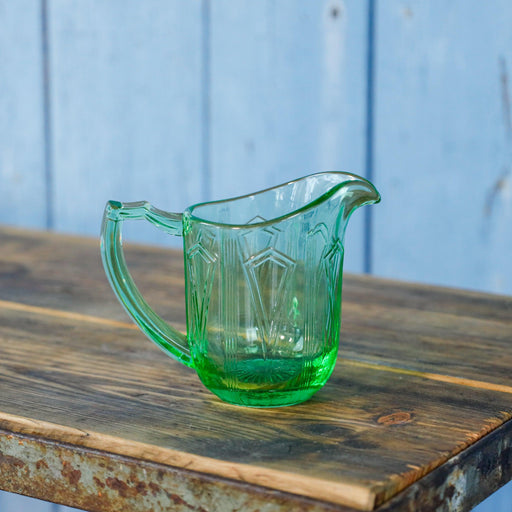 Beautiful, simple glass bowl made of pressed glass. The square shape has a graphic pattern on the base and a practical spout. She is very old, but ...