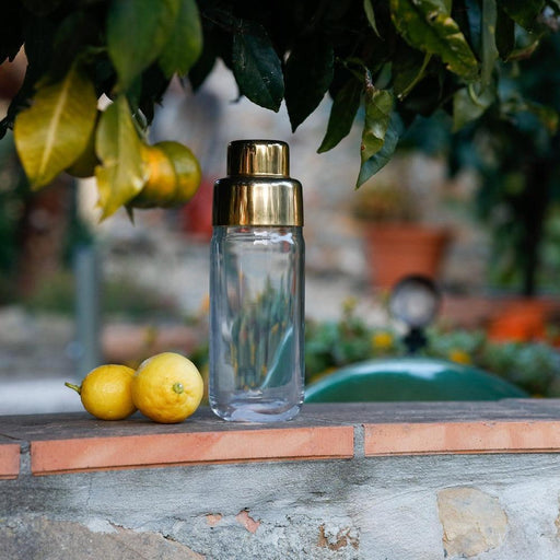 Elegant cocktail shaker made of crystal glass with a gold-plated lid. Super noble, gold plated. The jar has a tiny flaw at the top edge, only visib...