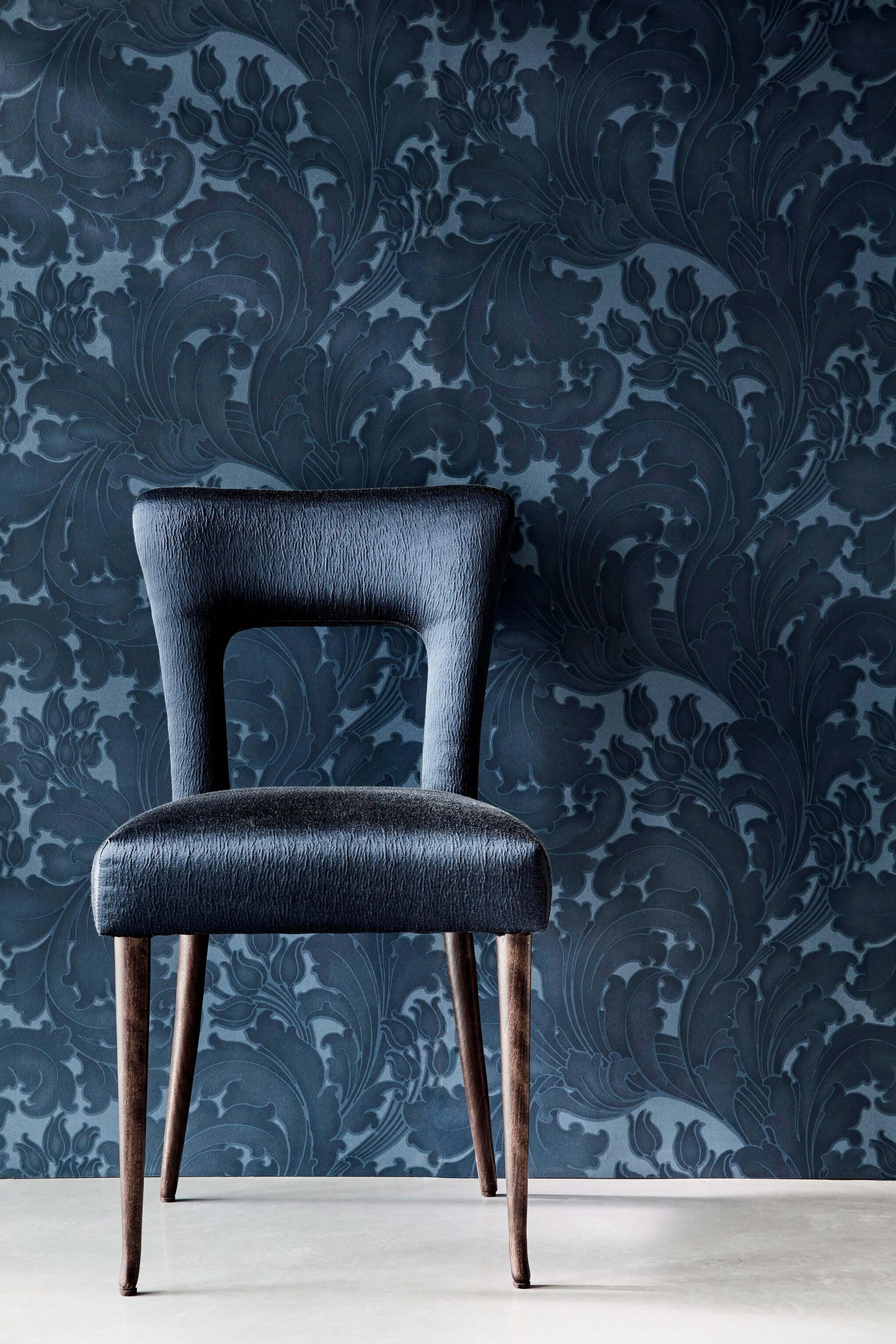 The Massingberd Blossom wallpaper from Little Greene, here in the Deep Blue version, is inspired by a wallpaper that was already wallpapered at t...