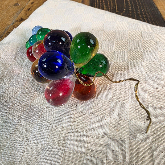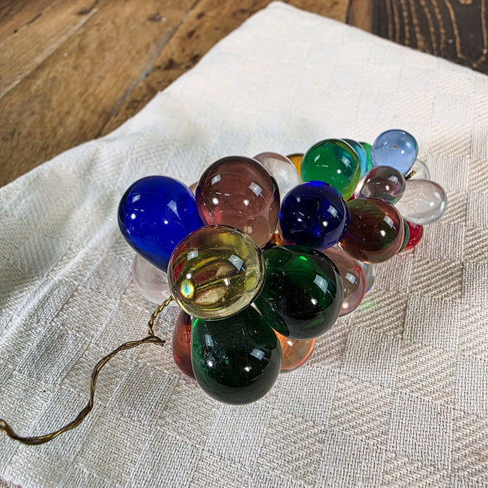 Bunte Weintrauben aus Muranoglas. Die hübsche Traube vereint viele bunte Trauben aus Muranoglas die mit Draht zu einer Traube verknüpft sind. Sehr dekorativ.