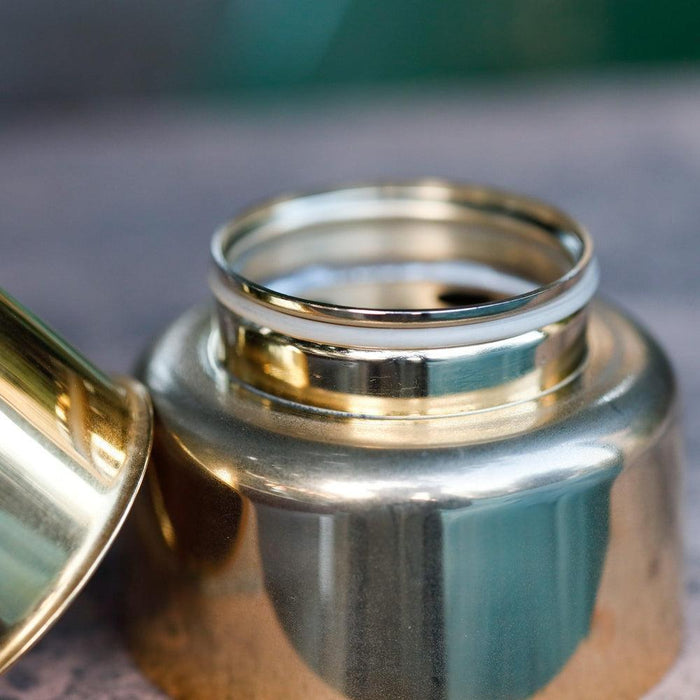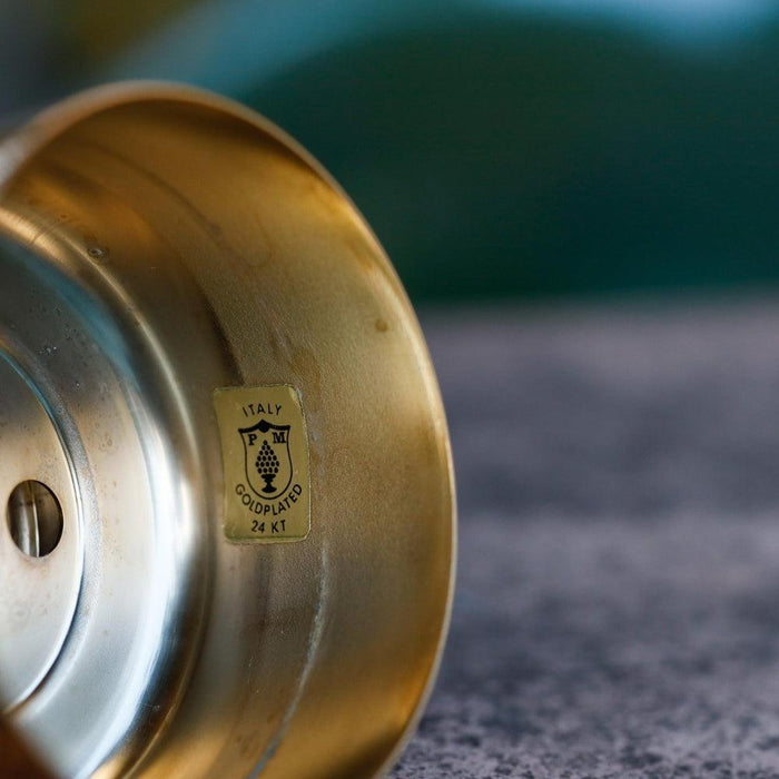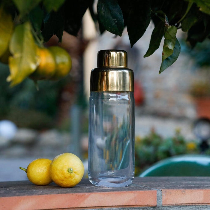 Elegant cocktail shaker made of crystal glass with a gold-plated lid. Super noble, gold plated. The jar has a tiny flaw at the top edge, only visible when you remove the lid. Gold plated 24 carat, Italy, PM, crystal glass