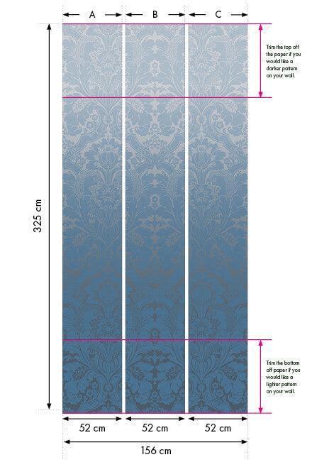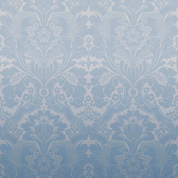 The lavish damask pattern was discovered at Marlborough House, near St James' Park. This impressive building was designed by Christopher Wren and was once the home of the Duchess of Marlborough, a friend and confidant of Queen Anne. The original wallpaper features a dark blue pattern on a pale blue background and looks very modern, although the general design has its origins in the Victorian era (as wallpaper) and before (as silk fabric). A special feature of this particular interpretation of the pattern is the ombré effect, which is created because the stronger color is applied at the bottom of the wall and the more delicate color is applied above it. This gives the room a feeling of height and brightness that would not be the case with a traditional damask pattern.