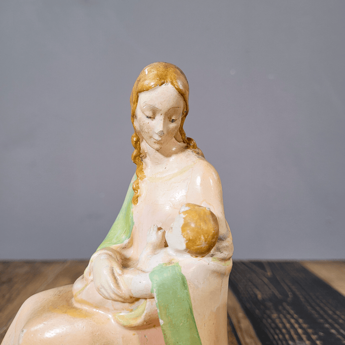 Schöne, schlichte Maria mit Kind Figur. Die hübsche Krippenfigur ist sehr alt und ein schöne Deko zur Weihnachtszeit. Die Madonna oder Madonnenfigur bringt schönen Vintage Charme mit sich