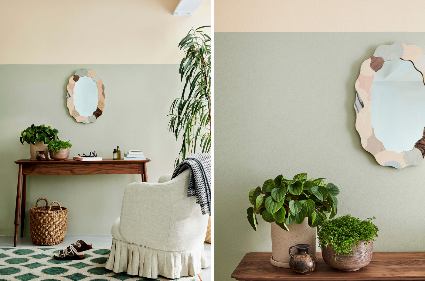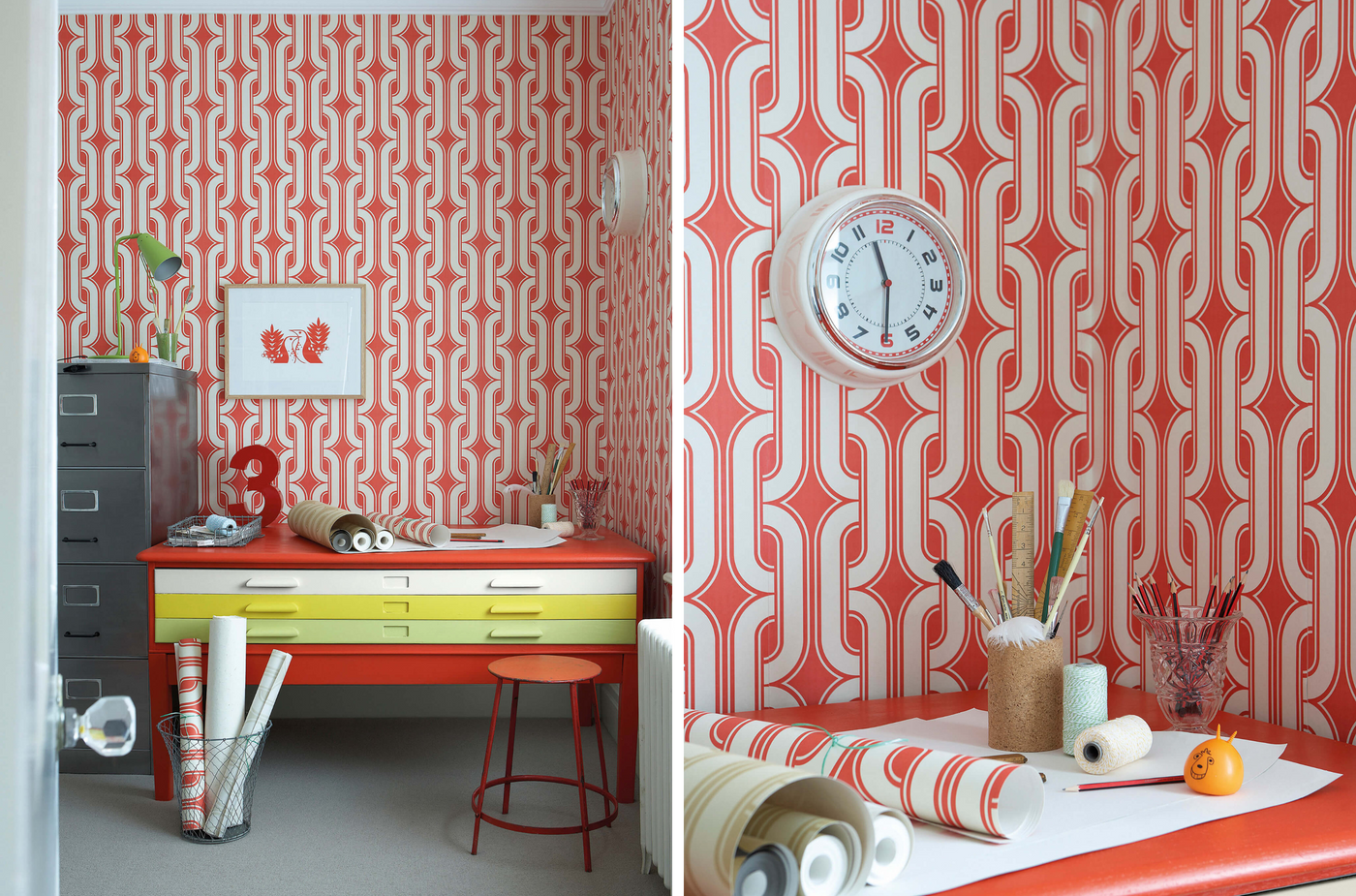 Das umfangreiche Werk von William Morris und seines Arts & Crafts Movement ist im Portfolio des National Trust umfassend belegt, nicht zuletzt in seinem eigenen Zuhause, dem „Red House“ in London. Er war sozusagen Influencer des 19. Jahrhunderts bei Hencroft Works, wo sein Freund Thomas Wardle unterrichtete und mit dem Färben von Stoffen und Tapeten mit natürlichen Tinten experimentierte. Dieses Hencroft-Design aus der National Trust Papers Kollektion ist ein gesticktes, sich wiederholendes Muster mit stilisierten Schlüsselblumen und wurde in Wardles Nähschule in Leek entdeckt.